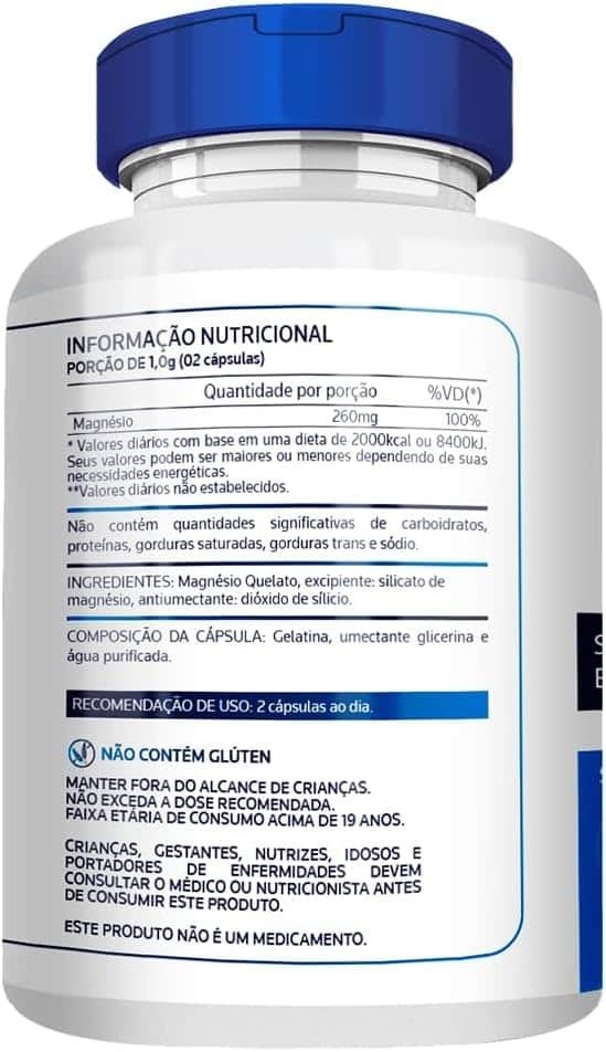Magnesio Quelato 500mg 100% Puro Maxima Absorção 120 Cáps Ecomev 2 Meses